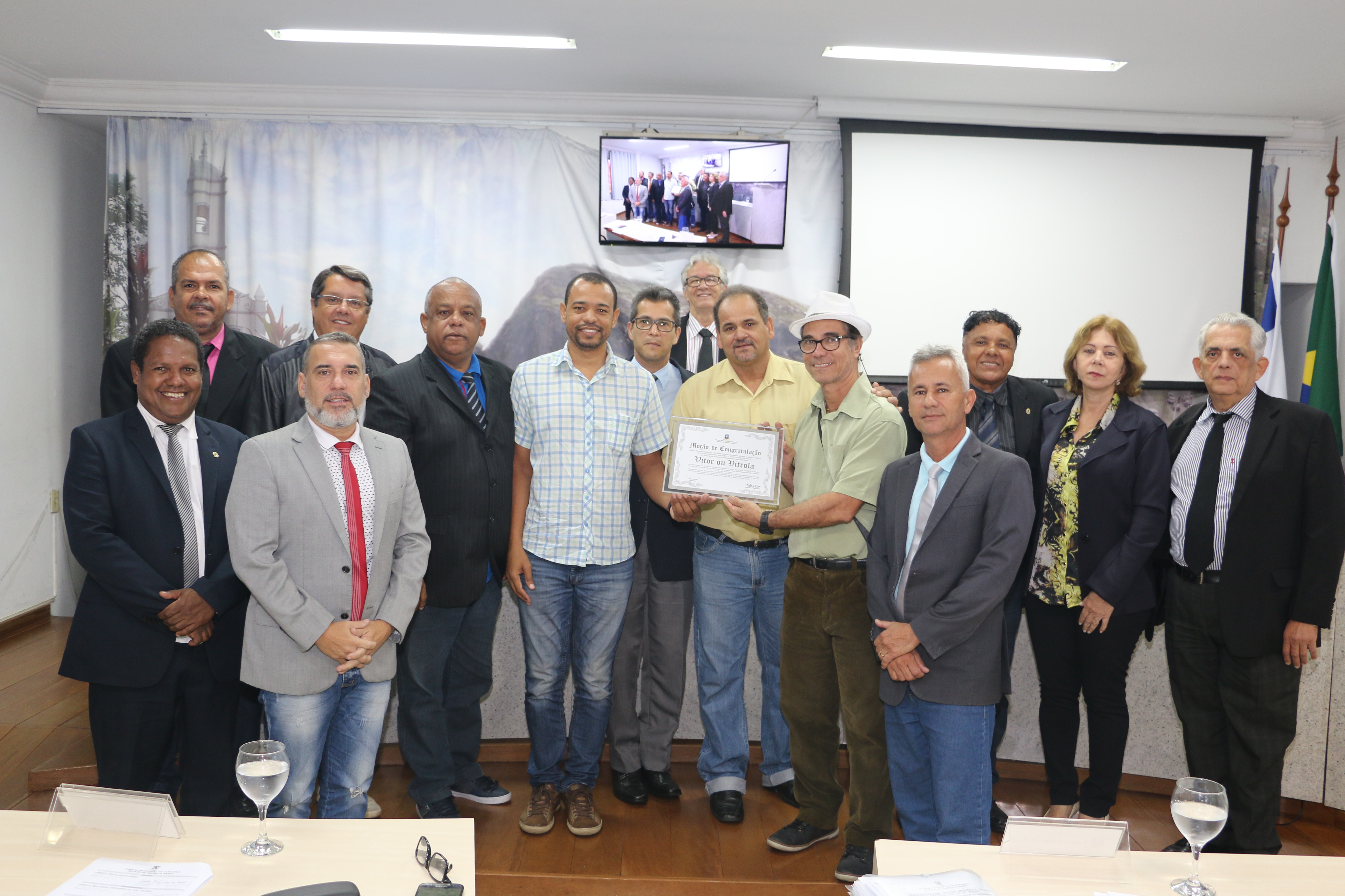 Entrega da Moção de Congratulação em comemoração aos 30 anos do excepcional espetáculo de teatro denominado Vitor ou Vitrola. Sessão Ordinária do dia 10 de dezembro. 10/12/2018